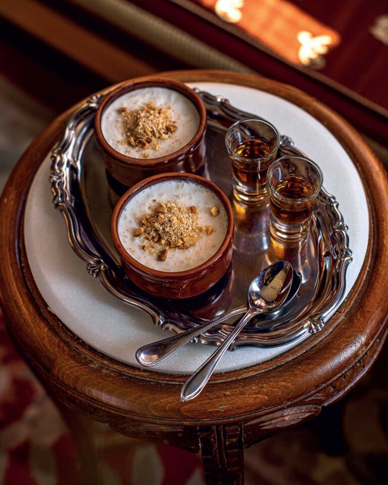 - Αφήνουμε να γίνει χλιαρό και σερβίρουμε, σκορπίζοντας αν θέλουμε σε κάθε μερίδα την καρύδα ή το μείγμα καρύδας-φυστικιών.