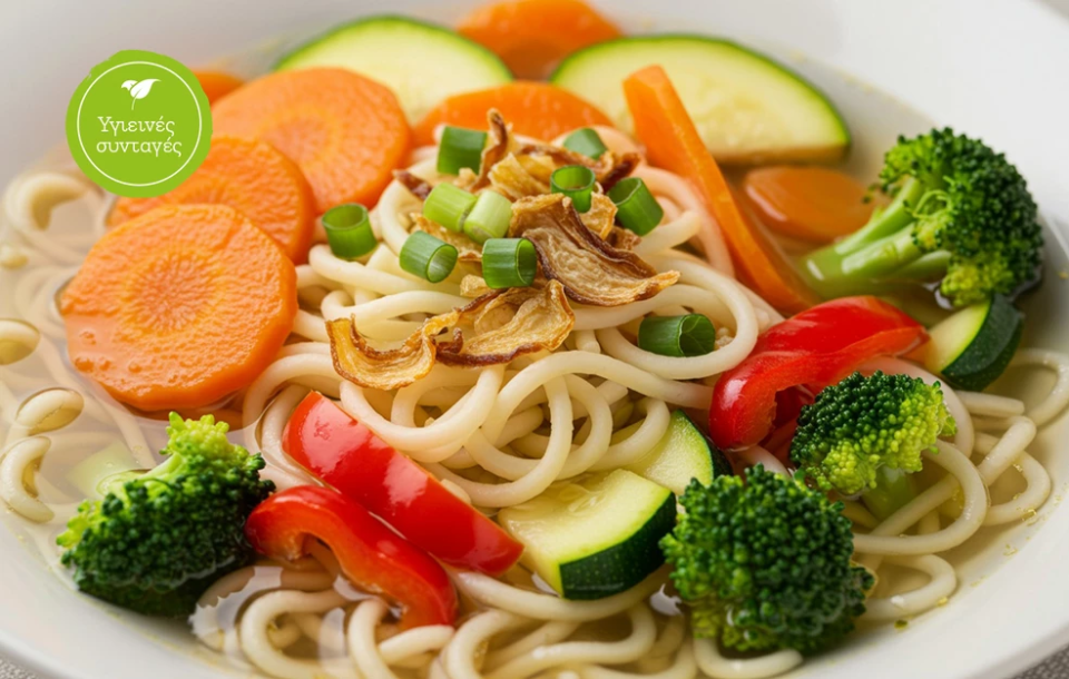 - Βήμα 3: Βράζουμε τη σούπα σε χαμηλή φωτιά για περίπου μισή ώρα. Τα τελευταία 5 λεπτά πριν αποσύρουμε από την φωτιά την σούπα προσθέτουμε τα noodles.