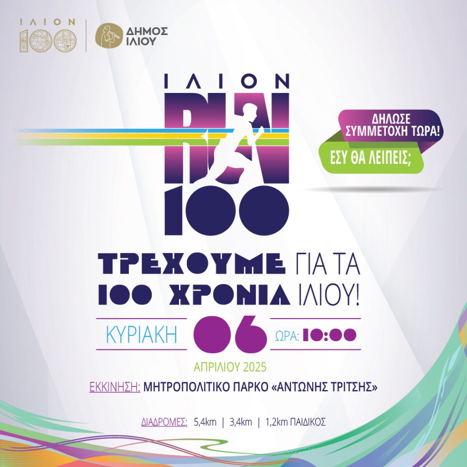 Ο Δήμος Ιλίου διοργανώνει το αθλητικό γεγονός «Ilion Run 100 – Τρέχω για την Υγεία μου», με στόχο την ανάδειξη της σημασίας της άθλησης και της σωματικής δραστηριότητας στην καθημερινότητα όλων μας.