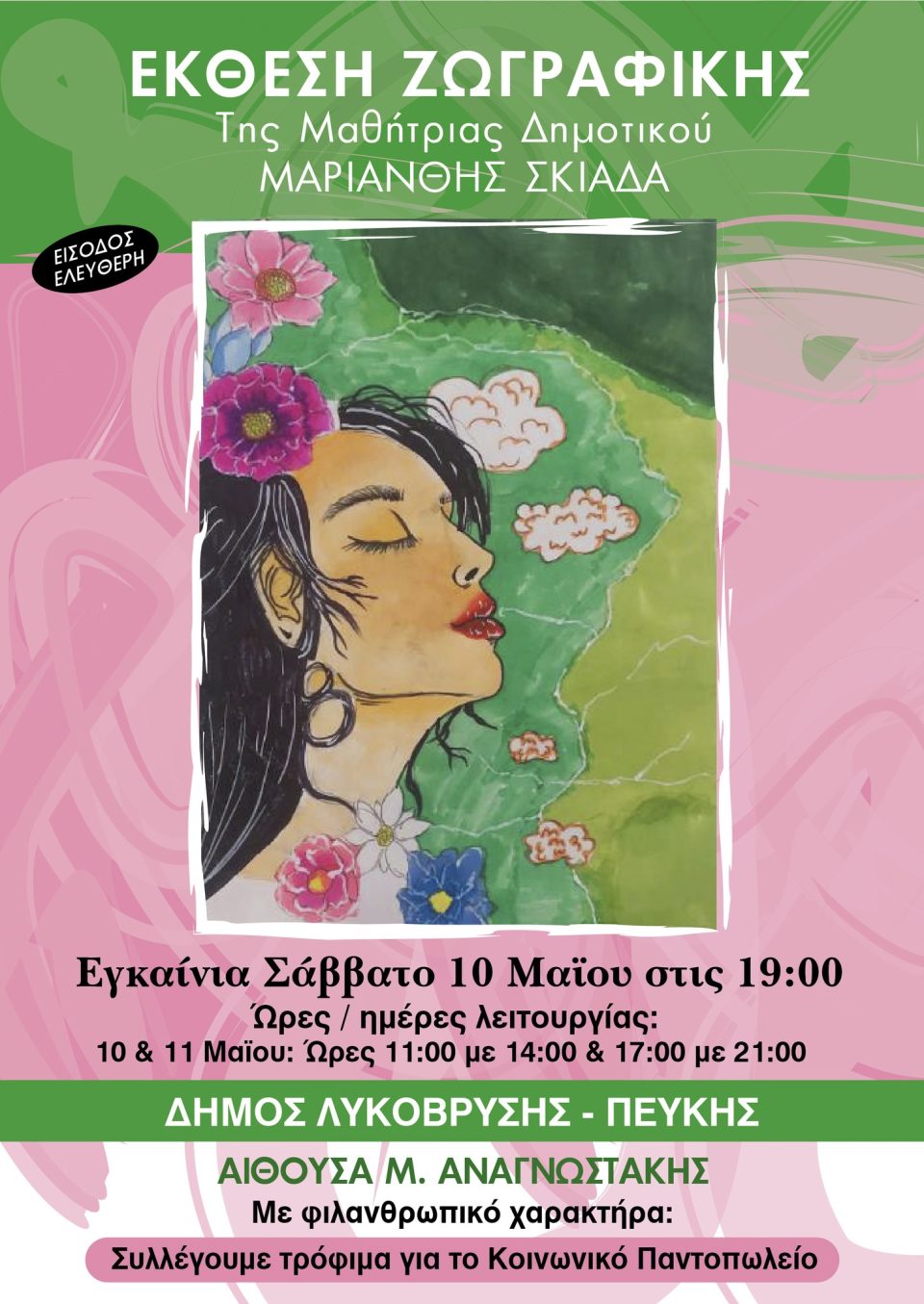 Ο Δήμος μας φιλοξενεί την υπέροχη έκθεση της μαθήτριας Μαριάνθης Σκιαδά στην Αίθουσα «Μ. Αναγνωστάκης» Εγκαίνια: Σάββατο 10 Μαΐου, στις 19:00