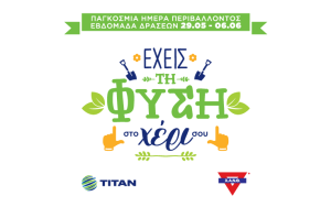 Για μία ακόμα χρονιά, η Χ.Α.Ν.Θ. και το ΤΙΤΑΝ – Εργοστάσιο Ευκαρπίας γιορτάζουν την Παγκόσμια Ημέρα Περιβάλλοντος διοργανώνοντας μια σειρά από συμβολικές δράσεις ενημέρωσης και ευαισθητοποίησης για την προστασία της φύσης και του περιβάλλοντος με τίτλο «Έχεις τη φύση στο χέρι σου» που θα πραγματοποιηθούν κατά το διάστημα 29/5 έως 6/6.