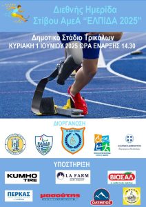 Η Διεθνής Ημερίδα Στίβου ΑμεΑ «ΕΛΠΙΔΑ 2025» θα διεξαχθεί στο Δημοτικό Στάδιο Τρικάλων την Κυριακή 1 Ιουνίου 2025.