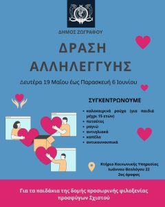 Ο Δήμος Ζωγράφου με ιδιαίτερη ευαισθητοποίηση στα ζητήματα που αφορούν στις ανάγκες και τα προβλήματα μεταναστών και προσφύγων, ανταποκρίθηκε θετικά στο αίτημα της επιστημονικής ομάδας της Δομής Προσωρινής Φιλοξενίας Σχιστού για την υποστήριξη των παιδιών που διαμένουν στη δομή.