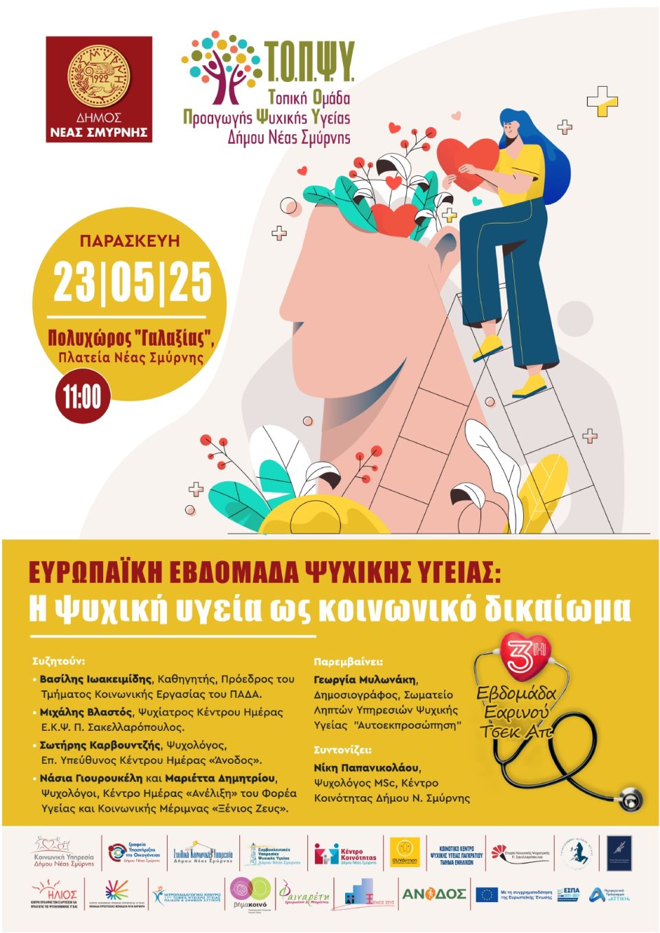 ΚεντρικήΚοινωνικάΗ ψυχική υγεία ως κοινωνικό δικαίωμα by xristiana11 Μαΐου 202511 Μαΐου 20250176 Share00 11/5/2025 Μια συζήτηση με αφορμή την Ευρωπαϊκή Εβδομάδα Ψυχικής Υγείας Την Παρασκευή 23 Μαΐου 2025 στις 11πμ Πολυχώρος Γαλαξίας, Πλατεία Νέας Σμύρνη.