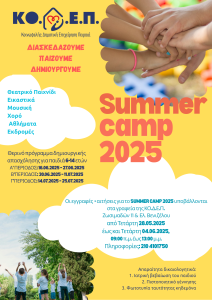 Ξεκινούν οι εγγραφές για το καθιερωμένο Summer Camp που διοργανώνει η Κοινωφελής Δημοτική Επιχείρηση του Δήμου Πειραιά (ΚΟ.Δ.Ε.Π.), προσφέροντας μια μοναδική ευκαιρία για χαρούμενες και δημιουργικές στιγμές στα παιδιά της πόλης μας.