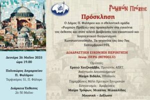Ο Δήμος Παλαιού Φαλήρου και η εθελοντική ομάδα “Ρωμηών Πράξεις“, σας προσκαλούν στα εγκαίνια της έκθεσης και στην τελετή βράβευσης του εικαστικού και λογοτεχνικού διαγωνισμού: