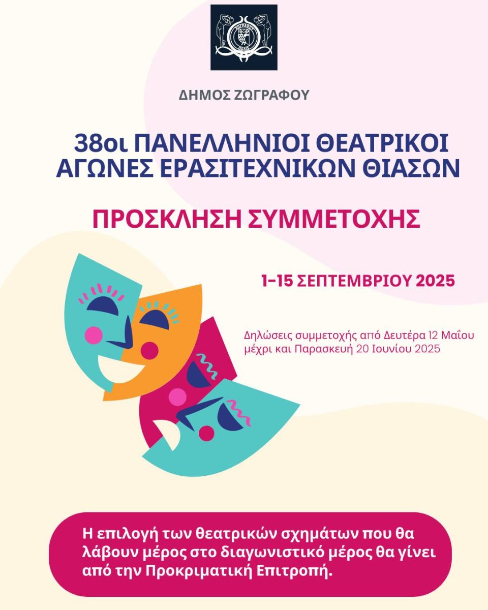 Η διοργάνωση από το Δήμο Ζωγράφου των 38ων Πανελλήνιων Θεατρικών Αγώνων Ερασιτεχνικών Θιάσων είναι γεγονός!