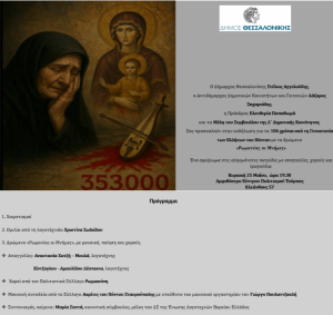 Ο Δήμος Θεσσαλονίκης, η Αντιδημαρχία Δημοτικών Κοινοτήτων και Γειτονιών και Μέριμνας για την Τρίτη Ηλικία και η Δ΄ Δημοτική Κοινότητα σας προσκαλούν την Κυριακή 25 Μαΐου 2025 και ώρα 19:30, στην εκδήλωση «Ρωμανίας οι Μνήμες», για τη συμπλήρωση 106 ετών από τη Γενοκτονία των Ελλήνων του Πόντου, στο Αμφιθέατρο του Πολιτιστικού Κέντρου Τούμπας (Κλεάνθους 57).