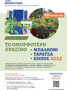 Στον διαγωνισμό μπορούν να συμμετέχουν οι ενήλικοι κάτοικοι του δήμου Νεάπολης-Συκεών. Με τους ενδιαφερόμενους και τις ενδιαφερόμενες να έχουν δικαίωμα συμμετοχής αποκλειστικά σε μία από τις τρεις διαγωνιστικές κατηγορίες, και συγκεκριμένα: α) Μπαλκόνι, β) Ταράτσα, γ) Κήπος.