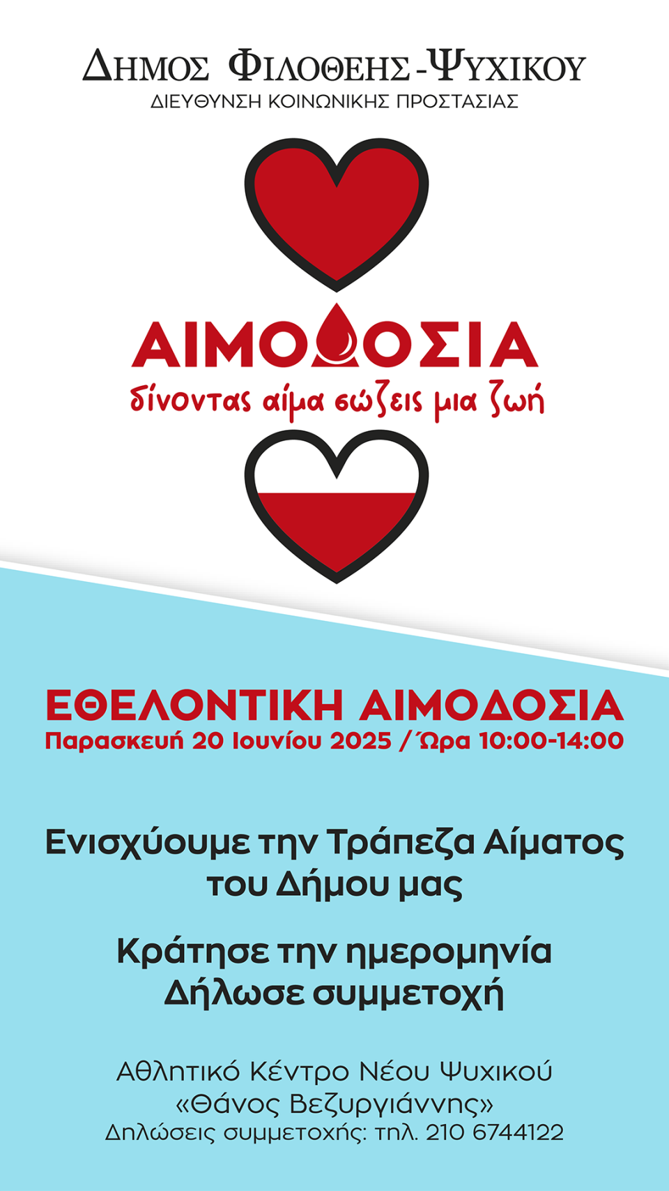 Ο Δήμος Φιλοθέης-Ψυχικού μας καλεί να γίνουμε μέρος της πιο σιωπηλής, αλλά και πιο σπουδαίας πράξης αλληλεγγύης: