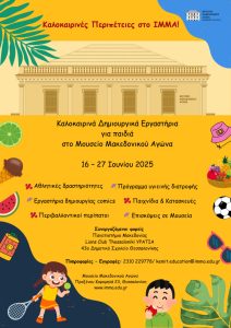 Το Ίδρυμα Μουσείου Μακεδονικού Αγώνα και της Νεότερης Ιστορίας της Μακεδονίας (ΙΜΜΑ), προσκαλεί όλα τα παιδιά της πόλης στα καθιερωμένα καλοκαιρινά εργαστήρια του Μουσείου που θα πραγματοποιηθούν από τις 16 έως τις 27 Ιουνίου 2025!