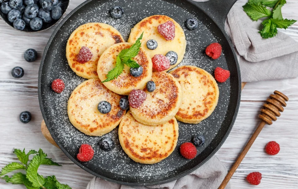 - Σερβίρετε σε μια στοίβα, περιχύστε με σιρόπι σφενδάμου και γαρνίρετε με τα αγαπημένα σας φρούτα.