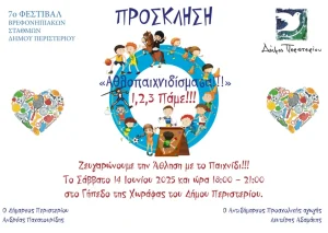 Ο Δήμος Περιστερίου συνεχίζει δυναμικά την παράδοση της Προσχολικής Αγωγής, διοργανώνοντας το 7ο Φεστιβάλ Βρεφονηπιακών Σταθμών, αφιερωμένο φέτος στη σύνδεση της άθλησης με το παιχνίδι, το Σάββατο 14 Ιουνίου 2025, από τις 18:00 έως τις 21:00, στο Στάδιο της Χωράφας. Η συμμετοχή είναι ελεύθερη για όλους.