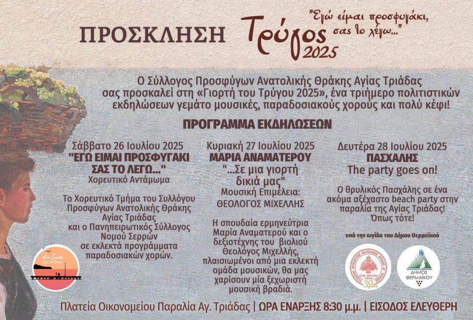 Σας προσκαλούμε όλους στη γιορτή μας για να περάσουμε ένα ουσιαστικό και αξέχαστο τριήμερο.