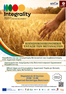 – Το νομικό πλαίσιο για την απασχόληση μεταναστών και η συμβασιοποίηση τους στον αγροτικό τομέα.