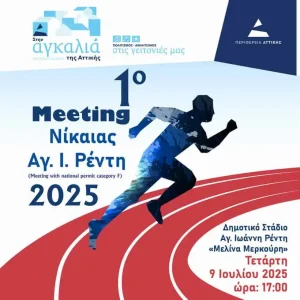 Ο Δήμος Νίκαιας – Αγ. Ιωάννη Ρέντη σε συνεργασία με τον ΑΟ Ερμής, την ΕΑΣ ΣΕΓΑΣ και την Περιφέρεια Αττικής διοργανώνει το 1ο Meeting Κλασικού Αθλητισμού, την Τετάρτη 9 Ιουλίου, στο Δημοτικό Στάδιο “Μελίνα Μερκούρη” στον Ρέντη.