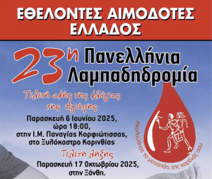 Η  <<Φλόγα της  Αγάπης>> η φλόγα της Λαμπαδηδρομίας των Εθελοντών Αιμοδοτών, περνάει από την πόλη μας, την Τρίτη  2 Σεπτεμβρίου στις 20.00 από το Άγαλμα του Κωνσταντίνου Παλαιολόγου στην παραλία επί της Λεωφόρου Ποσειδώνος και θα καταλήξει στην παραλία του Μπάτη.
