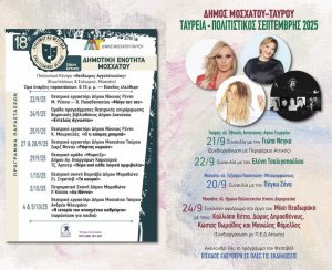 Με άρωμα παράδοσης ξεκινάει την Τετάρτη 17 Σεπτεμβρίου 2025 το πολιτιστικό φεστιβάλ του Δήμου Μοσχάτου-Ταύρου, «Ταύρεια – Πολιτιστικός Σεπτέμβρης 2025».