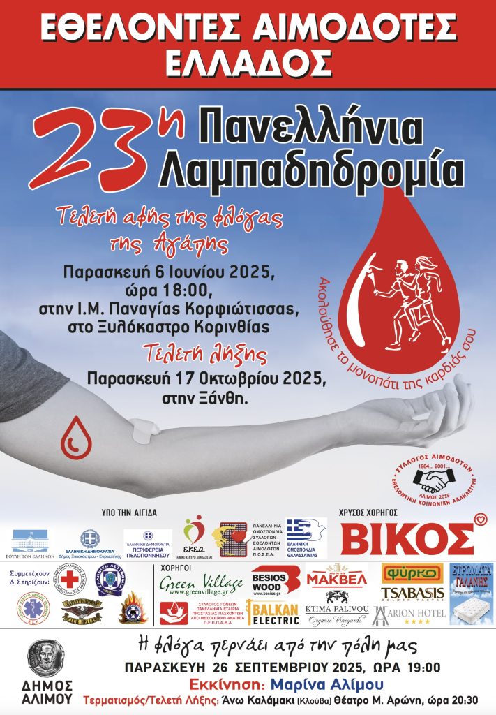 Η φλόγα της αγάπης, η φλόγα της Λαμπαδηδρομίας των Εθελοντών Αιμοδοτών, περνάει από την πόλη μας την Παρασκευή 26 Σεπτεμβρίου.