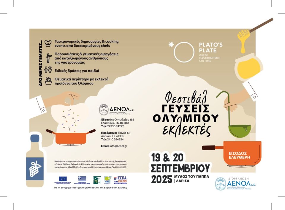 Όλα αυτά το διήμερο 19 και 20 Σεπτεμβρίου στο Μύλο του Παππά και στο φεστιβάλ «Γεύσεις Ολύμπου Εκλεκτές» που διοργανώνει ο Αναπτυξιακός Οργανισμός Τοπικής Αυτοδιοίκησης Νομού Λάρισας.