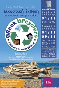 Εικαστική έκθεση με ανακυκλώσιμα υλικά παρουσιάζει η ομάδα GReek UPcyclers στον Πολιτιστικό Πολυχώρο «Μάνος Λοϊζος» (Θηβών 245) από 1η έως 9 Νοεμβρίου. Οι GReek UPcyclers είναι μια ομάδα τεσσάρων καλλιτεχνών που δημιουργούν εικαστικά και χρηστικά αντικείμενα αξιοποιώντας υλικά και αντικείμενα επανάχρησης. Με οδηγό τη φαντασία, την αισθητική και τον σεβασμό προς το περιβάλλον, μεταμορφώνουν ό,τι θεωρείται «άχρηστο» σε κάτι νέο, λειτουργικό και όμορφο.