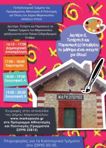 Ξεκινούν τη Δευτέρα 6 Οκτωβρίου 2025, τα μαθήματα των Παιδικών Καλλιτεχνικών Τμημάτων του Δήμου Μαρκοπούλου, για την περίοδο 2025 – 2026.