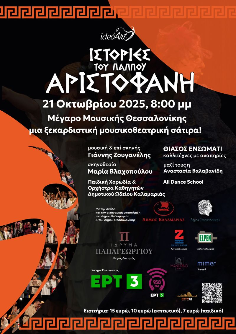 Ο Δήμος Καλαμαριάς, σταθερά αρωγός σε δράσεις που προάγουν τον πολιτισμό, τη δημιουργία και τη συμπερίληψη, στηρίζει και συμμετέχει ενεργά στη μεγάλη θεατρική παραγωγή «Ιστορίες του Παππού Αριστοφάνη» της ideoArt, η οποία θα παρουσιαστεί στο Μέγαρο Μουσικής Θεσσαλονίκης, την Τρίτη 21 Οκτωβρίου 2025, στις 8:00 μ.μ.