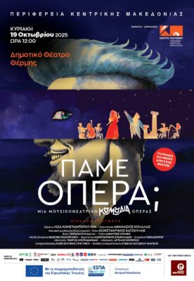 Το Κέντρο Πολιτισμού της Περιφέρειας Κεντρικής Μακεδονίας προσκαλεί το κοινό σε ένα διαφορετικό ταξίδι στον μαγικό κόσμο της όπερας, μέσα από την μουσικοθεατρική κωμωδία-έκπληξη «Πάμε… Όπερα;».