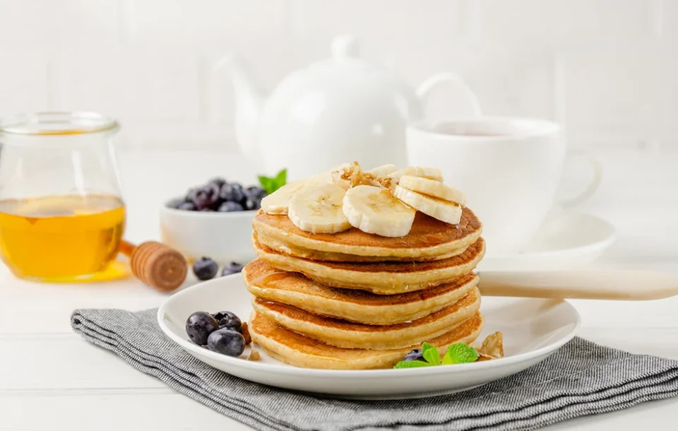 - Σερβίρετε με φέτες μπανάνας και σιρόπι σφενδάμου.