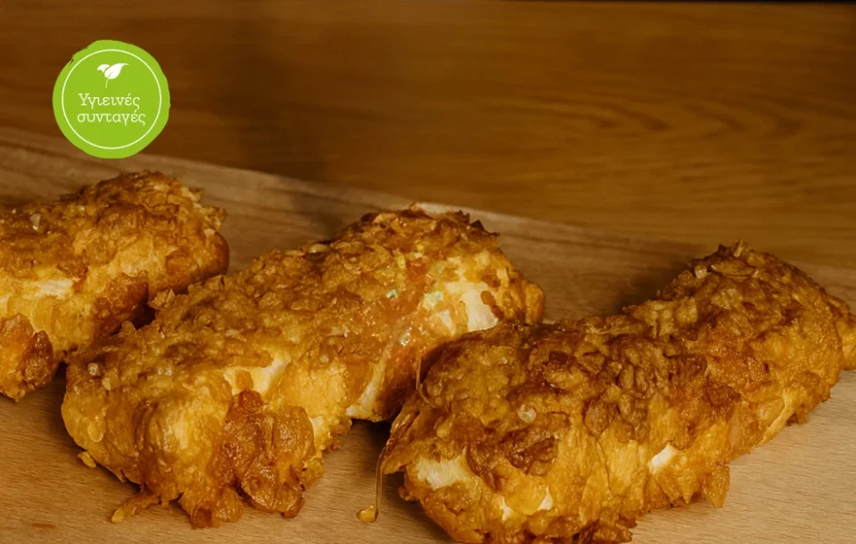 Ψητή φέτα παναρισμένη σε δημητριακά με μέλι
