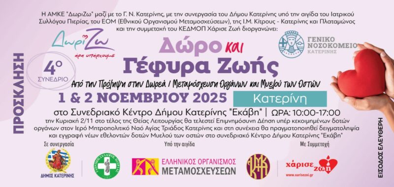 Οργανισμός Μεταμοσχεύσεων), της Ι.Μ. Κίτρους – Κατερίνης και Πλαταμώνος