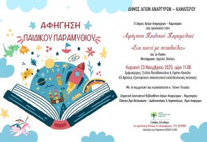 ΚεντρικήΚοινωνικάΑφήγηση παιδικού παραμυθιού by xristiana20 Νοεμβρίου 2025014 Share00 20/11/2025 Ενημερώνουμε ότι την Κυριακή 23 Νοεμβρίου 2025 και ώρα 11.00 θα πραγματοποιηθεί αφήγηση παιδικού παραμυθιού «ένα κουτί με πεταλούδες» στη Δημοτική Βιβλιοθήκη στην πλατεία Άρη Βελουχιώτη.
