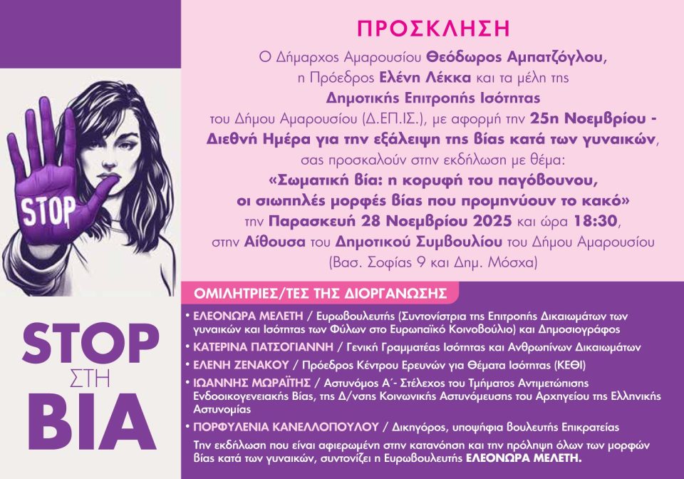 του Δήμου Αμαρουσίου (Δ.ΕΠ.ΙΣ.), με αφορμή την 25η Νοεμβρίου –