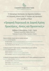 Οι εισηγήσεις θα αναδείξουν τις κύριες προκλήσεις για τους παραγωγούς, αλλά και τις δυνατότητες αναστροφής και μετασχηματισμού του αγροδιατροφικού μοντέλου μέσω καινοτομίας, συλλογικών σχημάτων, καλύτερης οργάνωσης και πιο στοχευμένων δημόσιων πολιτικών.