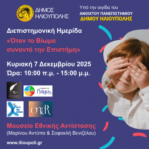 Οι φορείς “Δύναμαι, άκουσέ με”, “Ο Κόσμος του Πάρη”, “Cri du chat Greece” και “Onar studio”, με την υποστήριξη του Δήμου Ηλιούπολης και υπό την αιγίδα του ΑΝΟΙΧΤΟΥ ΠΑΝΕΠΙΣΤΗΜΙΟΥ ΔΗΜΟΥ ΗΛΙΟΥΠΟΛΗΣ σας προσκαλούν στη Διεπιστημονική Ημερίδα με θεματική: ΔΕΠ-Υ και Αυτισμός”