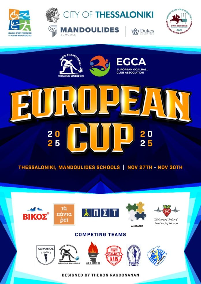Ο Δήμος Θεσσαλονίκης σε συνεργασία με το Αθλητικό Σωματείο ΑμεΑ «Κλειώ Θεσσαλονίκης» και τον Ευρωπαϊκό φορέα European Goalball Club Association διοργανώνουν τους Διεθνείς Αγώνες του Παραολυμπιακού αθλήματος Goalball – «EGCA European Cup 2025».