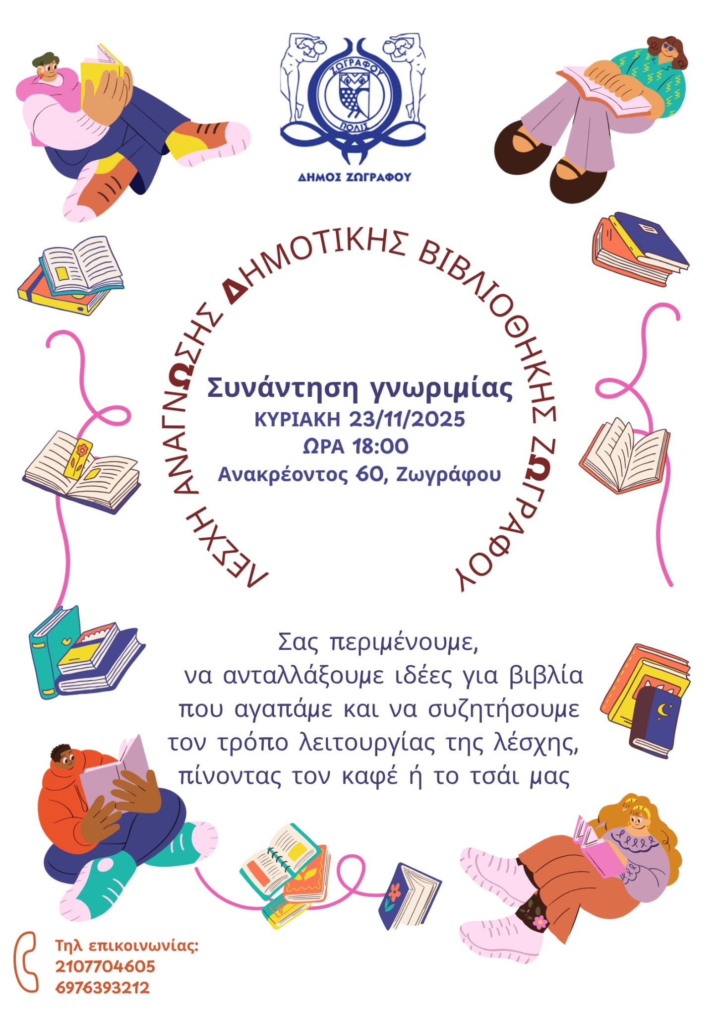 Σας περιμένουμε στην πρώτη συνάντηση της Λέσχης Ανάγνωσης της Δημοτικής Βιβλιοθήκης του Δήμου μας, αυτή την Κυριακή 23 Νοεμβρίου, στις 18:00!