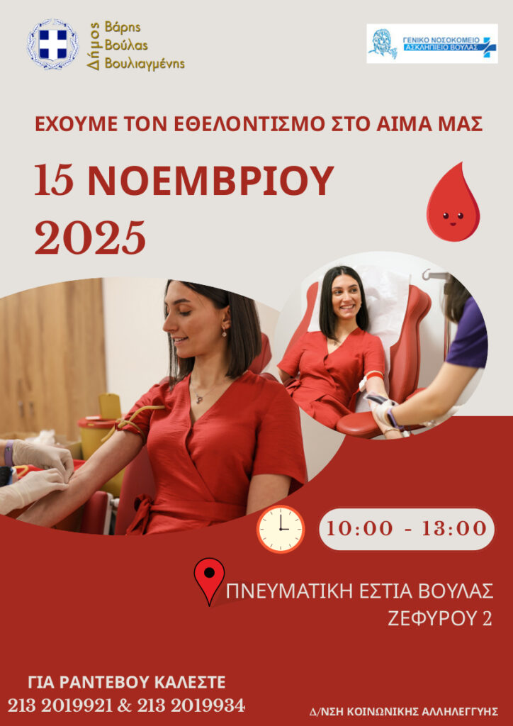 Η εθελοντική αιμοδοσία είναι μια πράξη αλληλεγγύης που σώζει ζωές! Είναι ένας από τους σημαντικότερους πυλώνες του συστήματος υγείας, καθώς εξασφαλίζει επάρκεια αίματος για ασθενείς που το χρειάζονται επειγόντως.