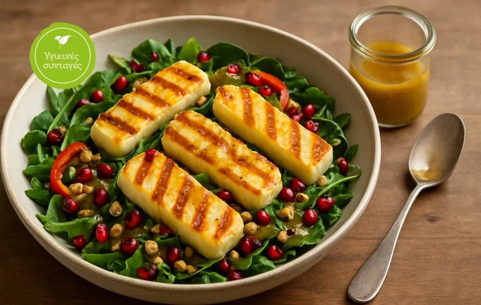 Σαλάτα με ρόδι και χαλούμι