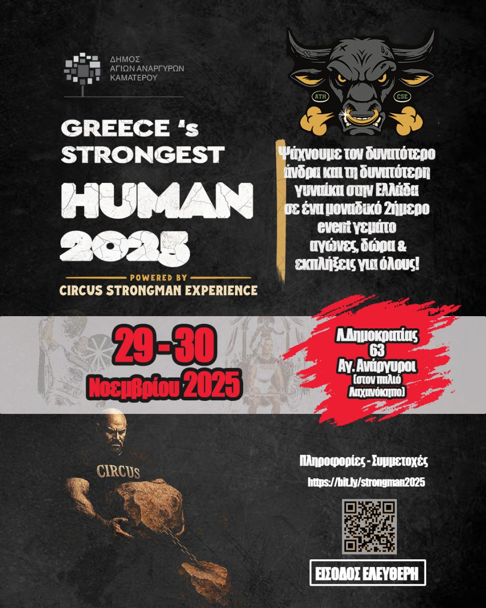 Στις 29 και 30 Νοεμβρίου, ο χώρος του Παλιού Λαχανόκηπου (Λ. Δημοκρατίας 63) μεταμορφώνεται σε αρένα δύναμης, αντοχής και θεαματικών δοκιμασιών, με στόχο να αναδείξει τον πιο δυνατό άνδρα και τη πιο δυνατή γυναίκα στην Ελλάδα!
