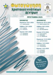 Οι εκδηλώσεις έχουν προγραμματιστεί να πραγματοποιηθούν από τις 28 Νοεμβρίου έως τις 14 Δεκεμβρίου 2025, 17:00 – 19:33 καλύπτοντας όλες τις Δημοτικές Κοινότητες του Δήμου, ώστε η γιορτινή ατμόσφαιρα να απλωθεί σε κάθε γωνιά.