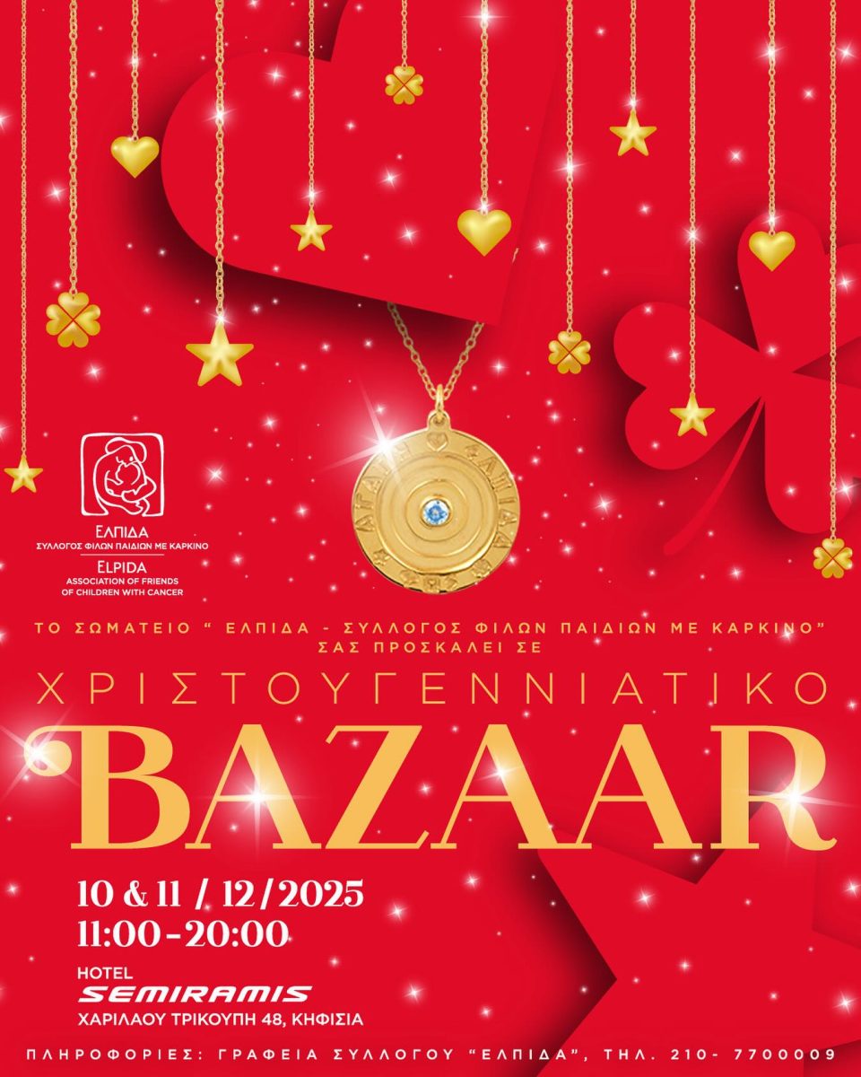 ΚεντρικήΚοινωνικάΕΛΠΊΔΑ Χριστουγεννιάτικο Μπαζάρ by xristiana8 Δεκεμβρίου 2025012 Share00 8/12/2025… Το πιο μαγικό Χριστουγεννιάτικο Μπαζάρ έρχεται! Η ΕΛΠΙΔΑ σας περιμένει στις 10 & 11 Δεκεμβρίου στο Semiramis, Κεφαλάρι, για να κάνουμε τις αγορές μας με αγάπη και να χαρίσουμε ελπίδα στα παιδιά με καρκίνο και τις οικογένειες τους.