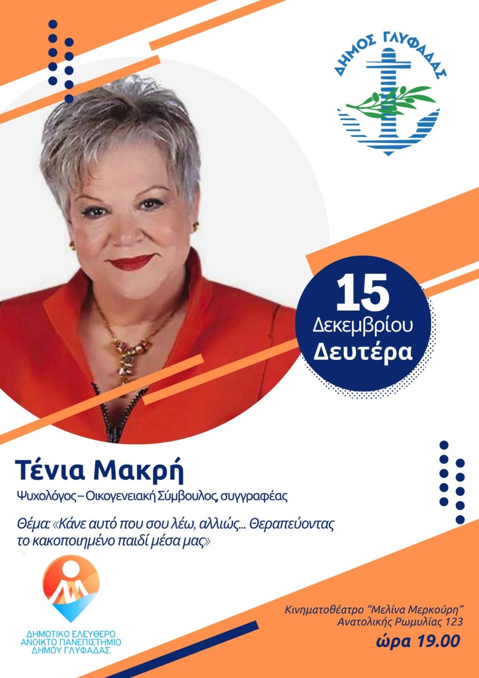 Η κ. Τένια Μακρή τη Δευτέρα 15 Νοεμβρίου στο Δημοτικό Ελεύθερο Ανοικτό Πανεπιστήμιο Γλυφάδας