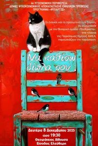 Οι ένοικοι και το προσωπικό των Δομών Ψυχοκοινωνικής Αποκατάστασης Ενηλήκων Πρέβεζας-Πρόγραμμα «Ψυχαργώς» σε συνεργασία με την θεατρική ομάδα «ΥποΚρισΗα», στα πλαίσια της Παγκόσμιας Ημέρας ΑΜΕΑ, παρουσιάζουν την παράσταση «Να καθίσω δίπλα σου;», την Δευτέρα 8 Δεκεμβρίου στη Θεοφάνειο στις 7.30 το απόγευμα, με είσοδο ελεύθερη για το κοινό.