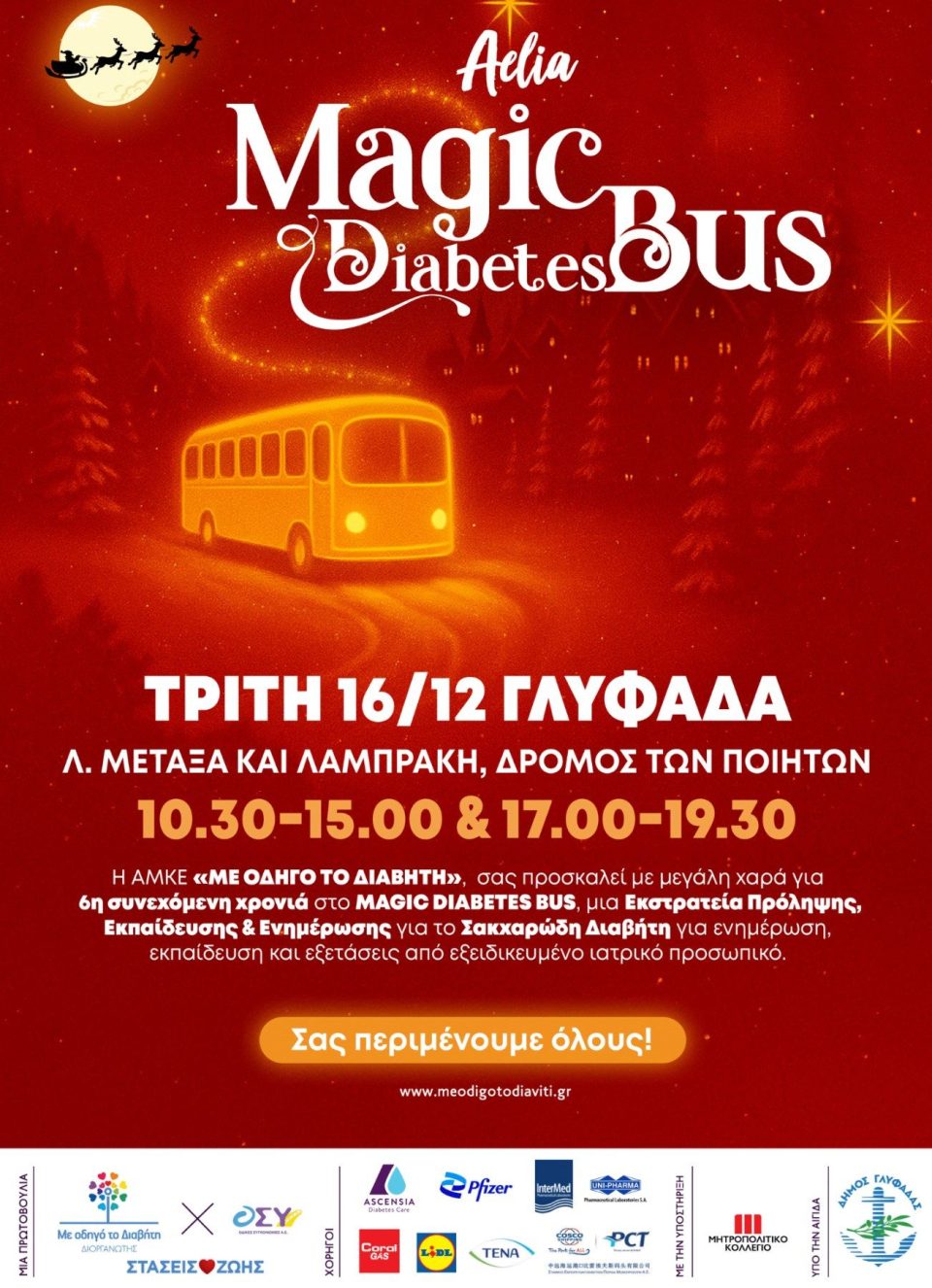 Το Μαγικό Λεωφορείο του Διαβήτη έρχεται και φέτος στη Γλυφάδα μας για να διαδώσει το μήνυμα της πρόληψης, μέσα από έγκυρη ενημέρωση και ευχάριστες δραστηριότητες για μικρούς και μεγάλους. Στις 16 Δεκεμβρίου, από