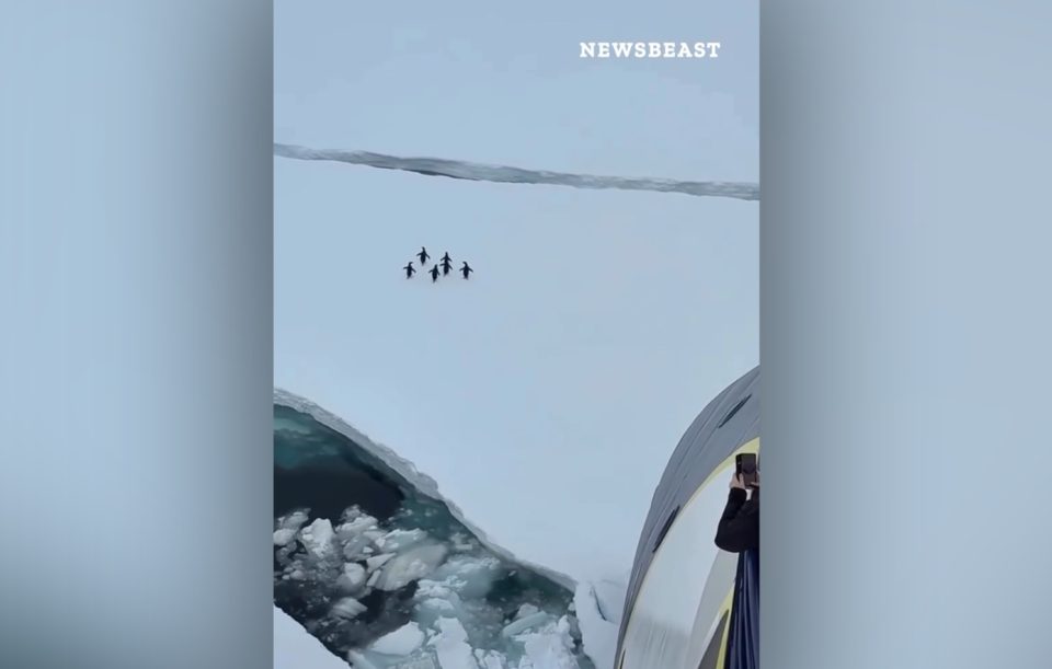Ένα ασυνήθιστο περιστατικό καταγράφηκε σε βίντεο και δείχνει ένα πλοίο στην Ανταρκτική να σταματά για να περάσουν πιγκουίνοι.