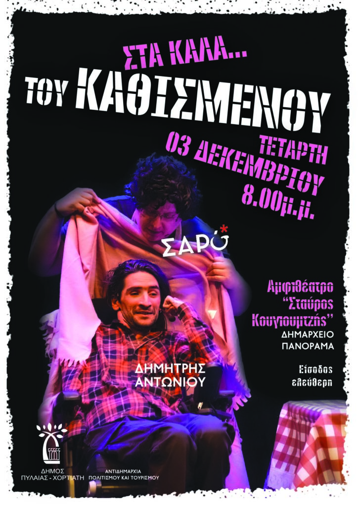 Την Τετάρτη 3 Δεκεμβρίου, στις 8.00 μ.μ., στο Αμφιθέατρο «Σταύρος Κουγιουμτζής» του Δημαρχείου Πανοράματος, η παράσταση “Στα Καλά του Καθισμένου”, ανεβαίνει στη σκηνή.