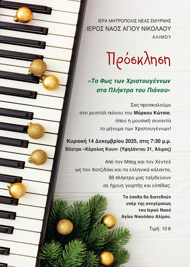 ΚεντρικήΚοινωνικάΡΕΣΙΤΑΛ ΠΙΑΝΟΥ ΥΠΕΡ ΤΗΣ ΑΝΕΓΕΡΣΕΩΣ ΤΟΥ ΙΕΡΟΥ ΝΑΟΥ ΑΓΙΟΥ ΝΙΚΟΛΑΟΥ ΑΛΙΜΟΥ by xristiana11 Δεκεμβρίου 2025051 Share00 11/12/2025
