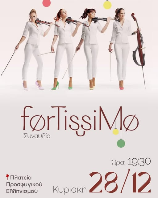 Ο Δήμος Καλαμαριάς διοργανώνει μια εορταστική συναυλία με το ηλεκτρικό κουαρτέτο εγχόρδων Fortissimo την Κυριακή 28 Δεκεμβρίου.