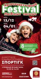 Το πνεύμα των Χριστουγέννων μέσα από την μαγεία της μεγάλης οθόνης επιστρέφει στην Νέα Σμύρνη στο 2ο Χριστουγεννιάτικο Φεστιβάλ Παιδικών Ταινιών που θα πραγματοποιείται κάθε Σάββατο και Κυριακή στον Δημοτικό Κινηματογράφο Σπόρτινγκ από τις 13 Δεκεμβρίου έως τις 4 Ιανουαρίου με δωρεάν είσοδο.